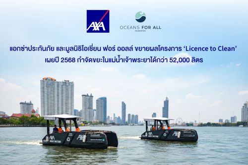 แอกซ่าประกันภัยประกาศความสำเร็จในการขยายผลโครงการ “Licence to Clean” ร่วมกับมูลนิธิโอเชี่ยน ฟอร์ ออลล์ (Oceans For All Foundation) โดยในปี 2568 สามารถจัดเก็บขยะในแม่น้ำเจ้าพระยาได้ทั้งสิ้น 52,110 ลิตร เติบโตเกือบ 80% จากปี 2567