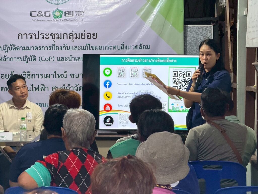 บริษัท ซีแอนด์จี เอ็นไวรอนเมนทอล โปรเท็คชั่น (ประเทศไทย) จำกัด หรือ ซีแอนด์จี ผู้ดำเนินโครงการกำจัดมูลฝอยด้วยวิธีการเผาไหม้เพื่อผลิตพลังงานไฟฟ้า ขนาดไม่น้อยกว่า 1,000 ตันต่อวัน ณ ศูนย์กำจัดมูลฝอยหนองแขม จัดประชุมกลุ่มย่อยชี้แจงข้อมูลและมาตรการป้องกันผลกระทบสิ่งแวดล้อม (CoP) พร้อมนำเสนอความคืบหน้าการก่อสร้างให้แก่ชุมชนรอบโครงการ เพื่อเตรียมความพร้อมก่อนเข้าสู่ขั้นตอนการทดสอบระบบ (Commissioning) ในเดือนพฤษภาคม 2569